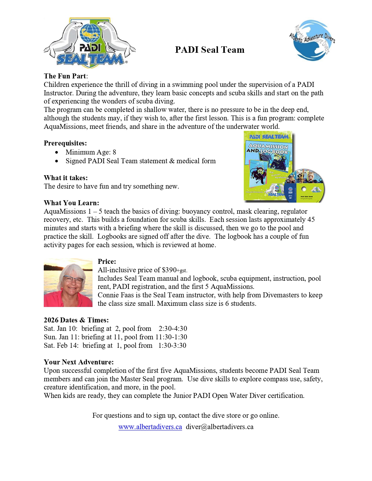 This is a fun scuba program, with a chance to explore cool AquaMissions, meet friends, and share in the adventure of the underwater world.