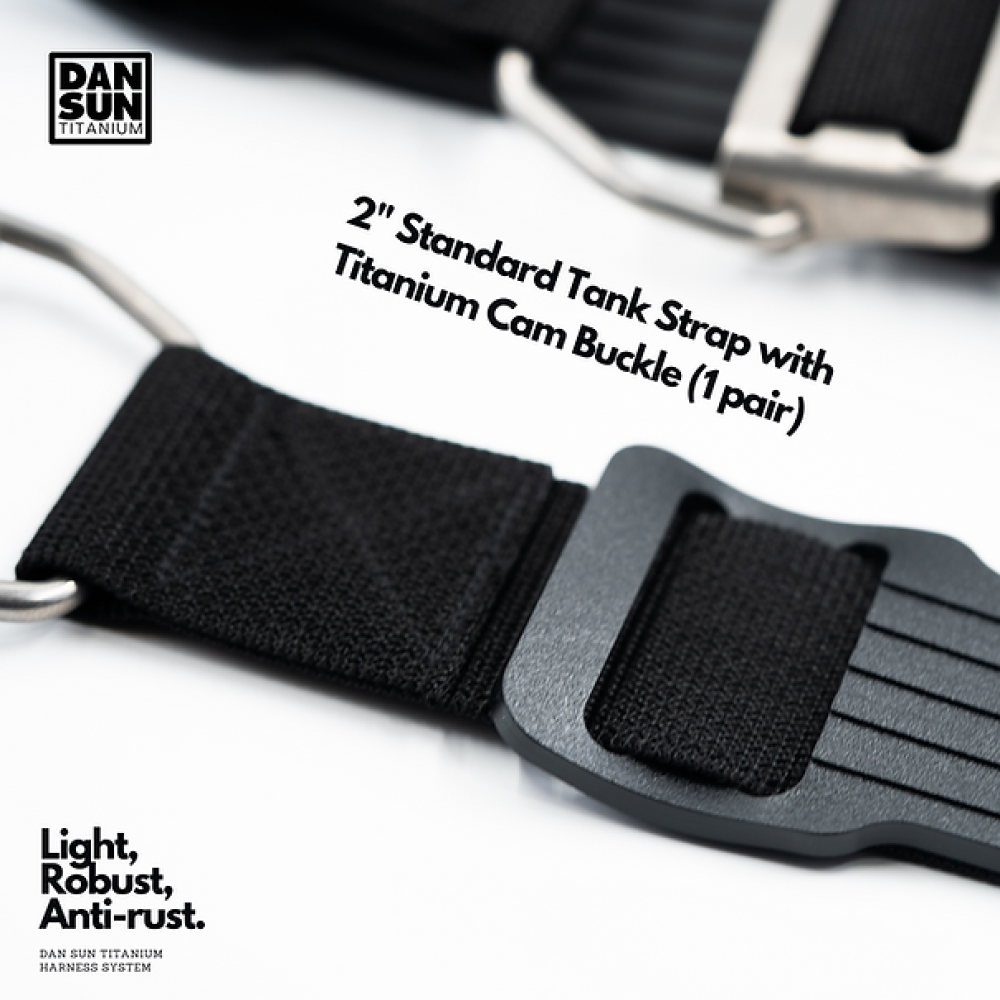 This set includes one pair of 2" wide nylon tank straps with Grade 5 titanium cam buckles and velcro fastening.