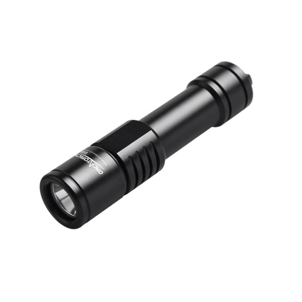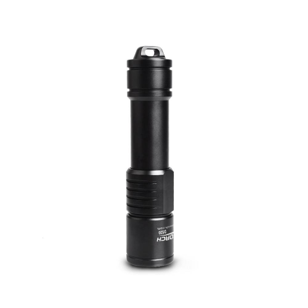 OrcaTorch D520 is a palm-sized diving light with a mechanically rotary switch. The rotary switch offers high reliability underwater. Using the USA CREE XM-L2(U4) neutral white LED, its max output can reach 1000 lumens, meanwhile the 5000K LED color temperature provides superb color rendition. Powered by one USB-C 18650 battery, its max runtime can reach 2 hours.