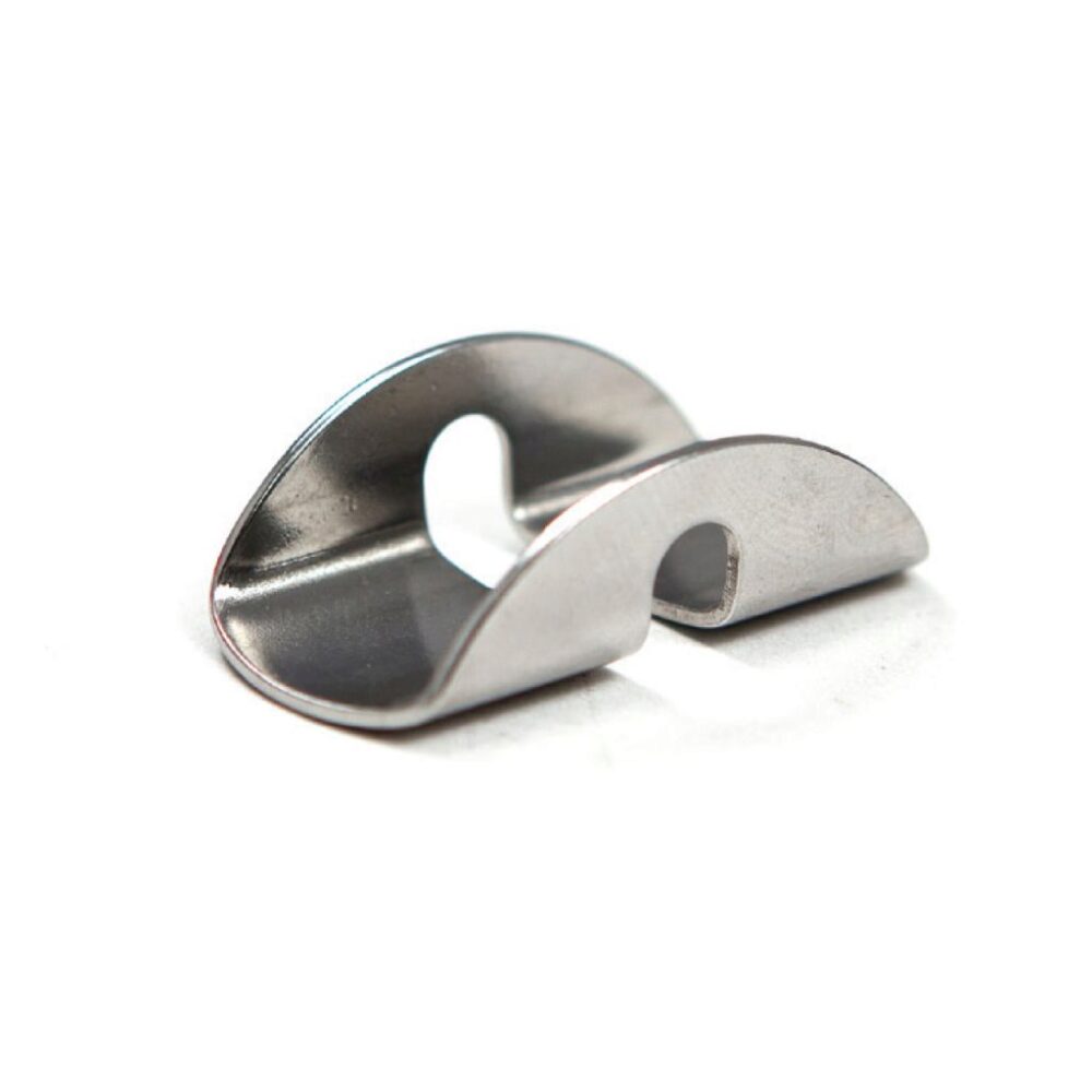 This D-ring holder (also referred to as a "taco") allows you to attach a D-ring onto a cylinder using the stainless sheathed hose clamp. The holder is held into place by the hose clamp and provides an attachment point on a cylinder when desired. These are often used on sidemount, stage, decompression and bailout cylinders that traditionally have a cylinder strap system in place that includes the sheathed stainless hose clamp. This holder works best with standard gauge D-rings.