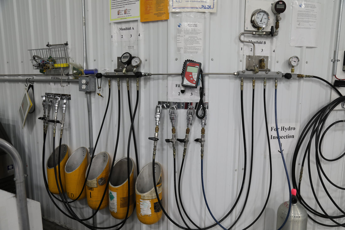 We service equipment brands that we sell; visually inspect cylinders, repair dry suits, etc.
