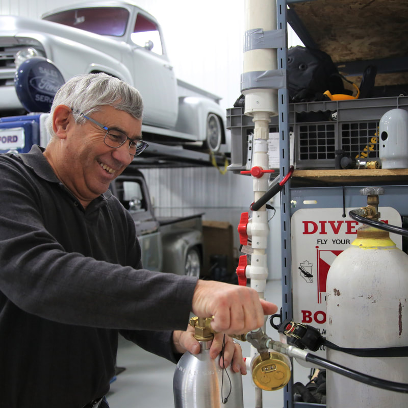 We fill CO2 as well, for home beer brewers, and little cylinders for machines that make fizzy beverages.We fill Avalanche packs for sledders as well.