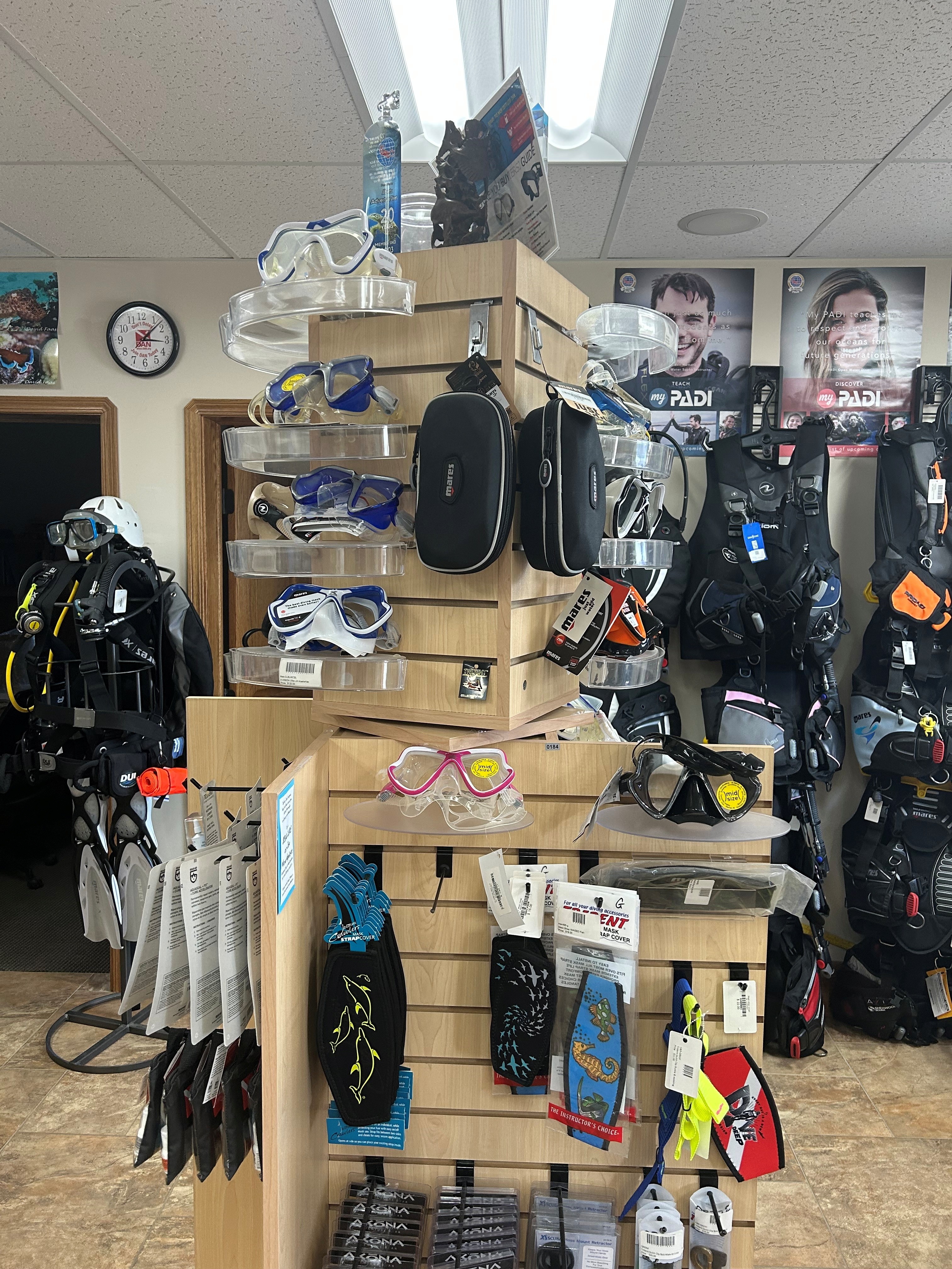 We sell major scuba brands and stock items from the smallest o-ring to full gear packages.